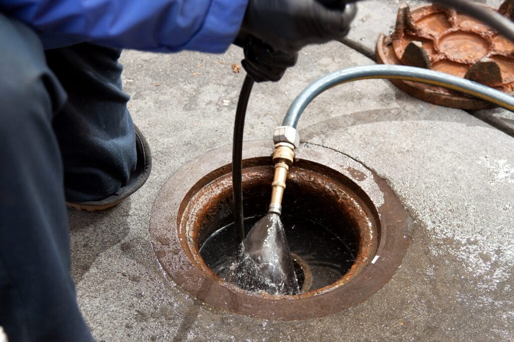 We use camera inspection and hydro jetting to clear the line completely so the backup does not return the next heavy rain.